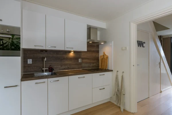 Deze prachtige rechte witte hoogglans keuken geeft elke ruimte een moderne, frisse uitstraling. De keuken is 2,80 meter breed en voorzien van een duurzaam kunststof werkblad — makkelijk in onderhoud en stijlvol afgewerkt.