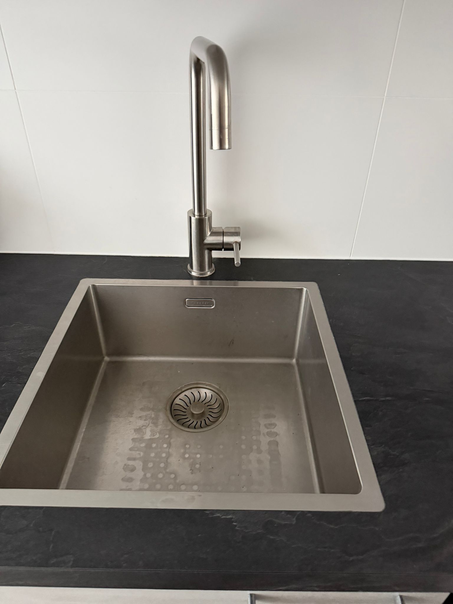 Te koop aangeboden: een moderne, rechte keuken in stijlvolle grijze betonlook. De keuken straalt een eigentijdse uitstraling uit en is voorzien van een hoogwaardig stenen composiet werkblad, wat zorgt voor een luxe en duurzame afwerking.