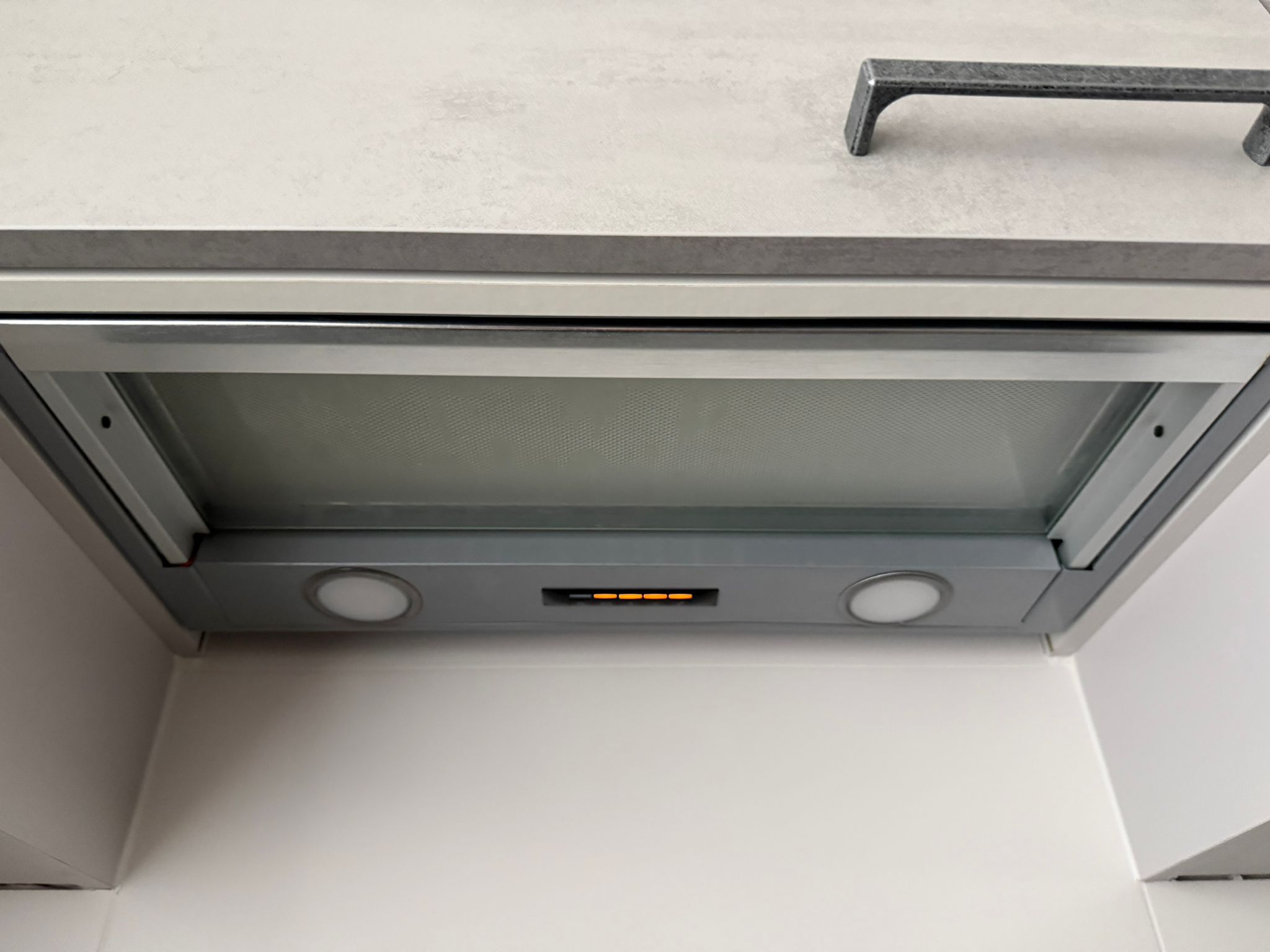 Strakke moderne rechte betonlook keuken + INBOUWAPPARATUUR